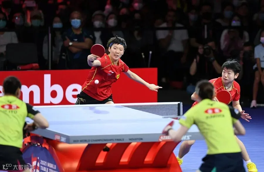 王曼昱(左二)/孙颖莎(右一)在比赛中。新华社记者 吴晓凌 摄