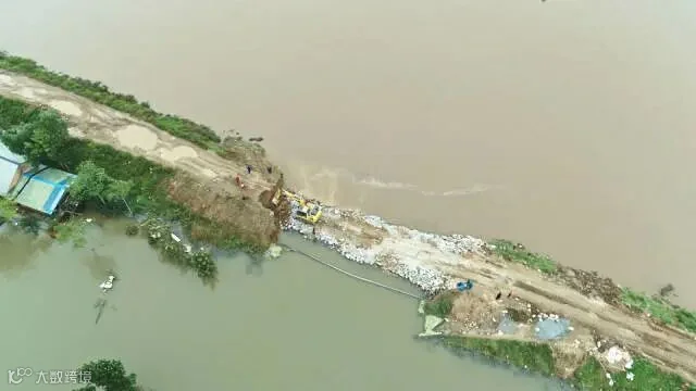 2021年10月8日,汾河山西新绛段桥东村附近堤坝处决口成功合龙。(视觉中国/图)