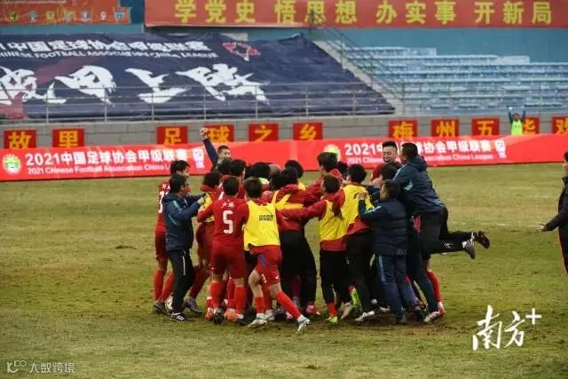 经过鏖战,最后一分钟,客家队一个进球将比分扳平,梅州客家队1:1昆山队,拿到本赛季直升中超门票,梅州客家冲超成功!