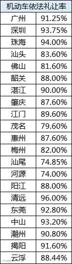 其中,深圳、珠海、清远、中山礼让率超过93%,汕头、佛山、茂名、梅州、汕尾、河源礼让率不足85%。茂名油城十路、汕尾红海大道、河源东环路、河紫路相关路口礼让率在70%以下。