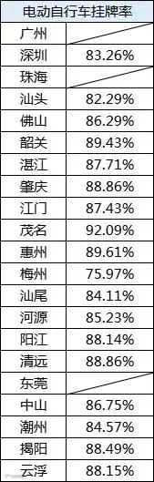 其中,深圳、汕头、梅州、汕尾、潮州上牌率不足85%,广州、珠海、东莞未发现上牌电动自行车。