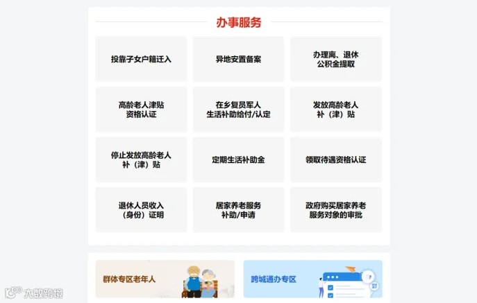 值得一提的是,针对社会老龄化进程加快现象,龙岗区在“适老服务”建设方面进行探索和创新,聚焦老年人的高频业务和服务场景,兼顾老年人的社会需要,从便利性入手,于细微处用心,构建适老服务专题页面。