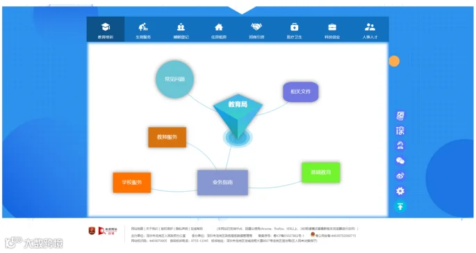 为提高网站智能化水平,龙岗区梳理龙岗政府在线站内生育服务、婚姻登记、住房租房、招商引资、医疗卫生、科技创业、教育培训等核心业务,以核心业务为主题构建信息资源知识图谱关联婚姻、教育、住房、科技、招商、医疗、生育等服务信息,形成业务信息树,寻找各业务之间相互关联的信息点,彼此之间相互关联。知识图谱能快速智能生成以“知识”为核心的网站知识集合,能以机器可读的形式厘清网站信息之间的关联关系,实现网站内信息资源、办事服务之间相关联,数据与服务之间互联互通,市民通过网站知识图谱地图可精准获取所需政务信息和政务服务。