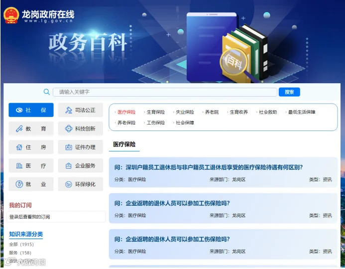 龙岗区对政府办事服务事项、互动交流、政务资讯等现有知识进行目录树状分类结构管理,按照不同业务主题进行知识分类,信息聚合,推出政务百科服务。市民可根据个人需求进行知识订阅,具有良好的互动性。