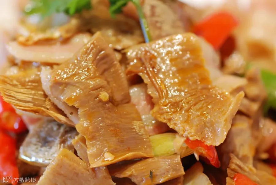 韶关的瑶山烟肉,烟肉色泽浓郁透亮,腊味十足,肉质结实坚韧,富有嚼劲。尝上一口独具风味,让人唇齿留香。