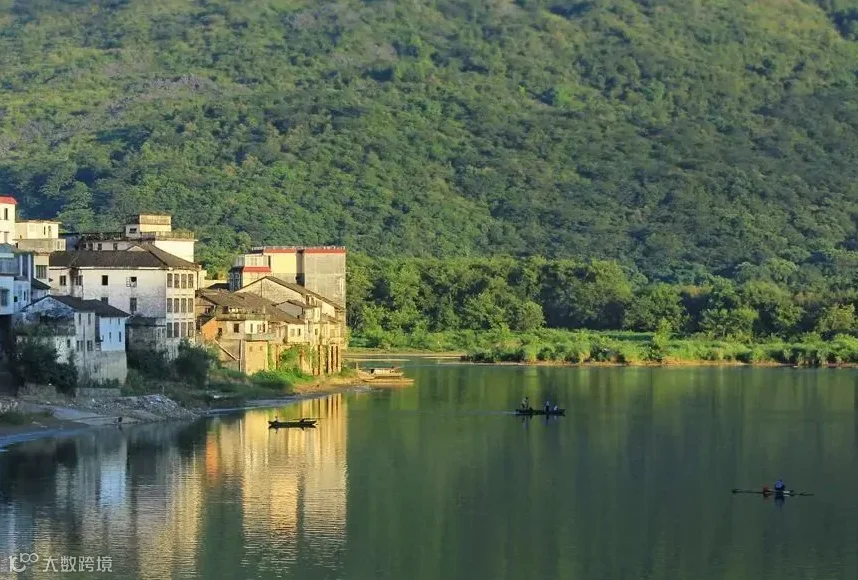 在秦汉古道的旁边,拥有一个宛如一幅完整的泼墨山水画的水口连江画廊。那里山清水秀、峰峦连云,两岸山峰起伏,各显秀姿;峭壁上钟乳琳琅;中间是翠绿的田园、古旧的民居,构成一幅淡雅清秀的山水画卷。