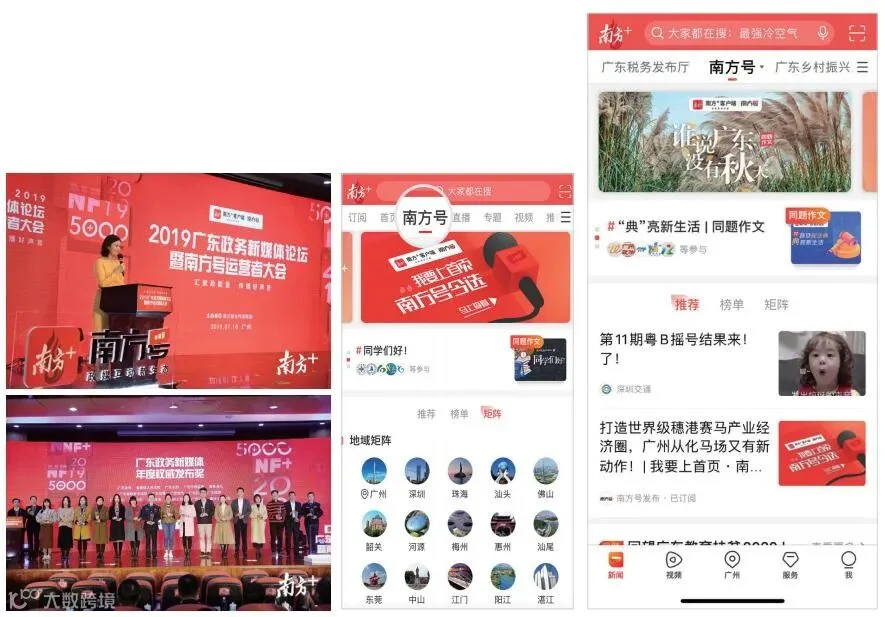 南方+客户端是广东省委省政府的权威信息发布平台。自2015年10月23日上线以来,经过6年发展,已建成集APP、手机站、小程序、数字报、“两微”于一体的移动产品矩阵,凭借独特的南方党媒算法、突出的“新闻+政务服务商务”能力、稳定的“三高”(高素质、高影响力、高消费力)用户群,在省级党端、大湾区传播平台中占据第一权威移动发布平台地位,与南方日报、南方杂志、南方新闻网共同构建起广东“一报、一刊、一网、一端”的主流媒体立体传播格局,报网端传播矩阵覆盖受众约1.5亿。
