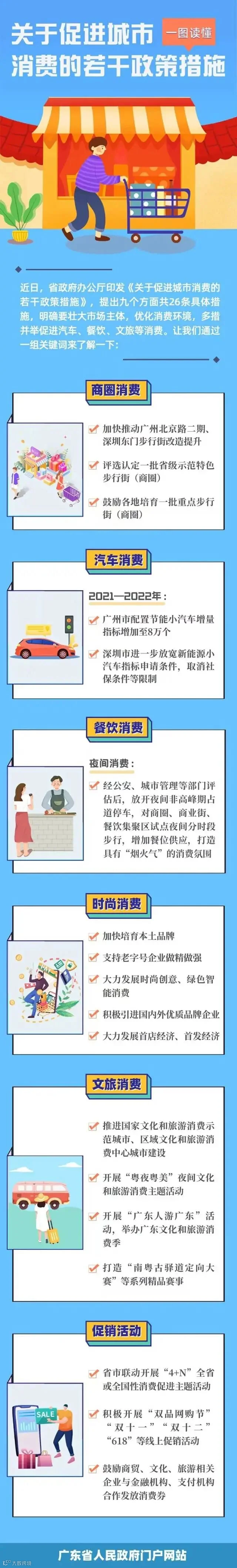 26.支持跨界促销。视情在全省发放消费券。鼓励商贸、文化、旅游相关企业与金融机构、支付机构合作发放消费券,以二维码、小程序、APP、单张等形式汇集消费优惠券、消费促销活动信息,在机场、车站、码头、口岸、高速公路收费站/服务区等窗口宣传派发。绘制多语种电子旅游消费地图,标注零售、餐饮、娱乐、离境退税等各类消费门店、消费地标、消费集聚区、商圈、商业街,在省市各级文旅、商务官方网站、微信公众号持续发布。(省商务厅、财政厅、交通运输厅、文化和旅游厅、地方金融监管局,人民银行广州分行,各地级以上市人民政府按职责分工负责)