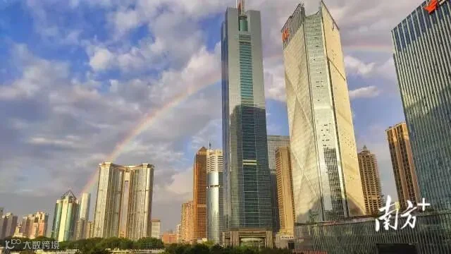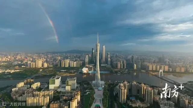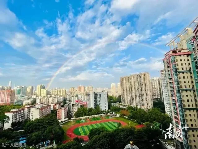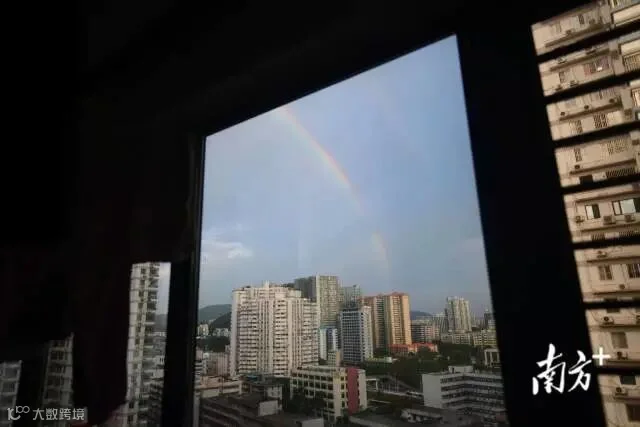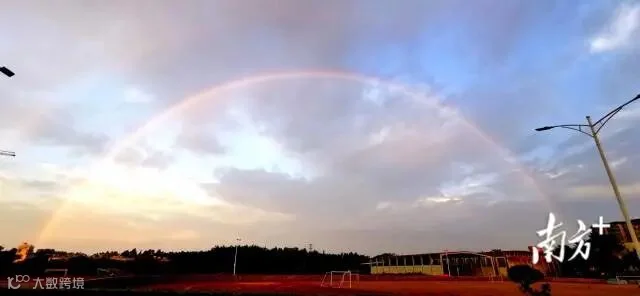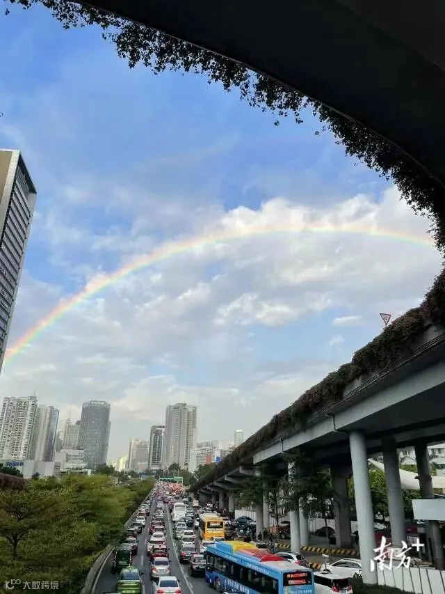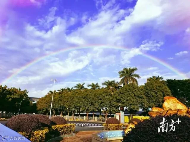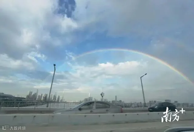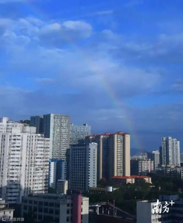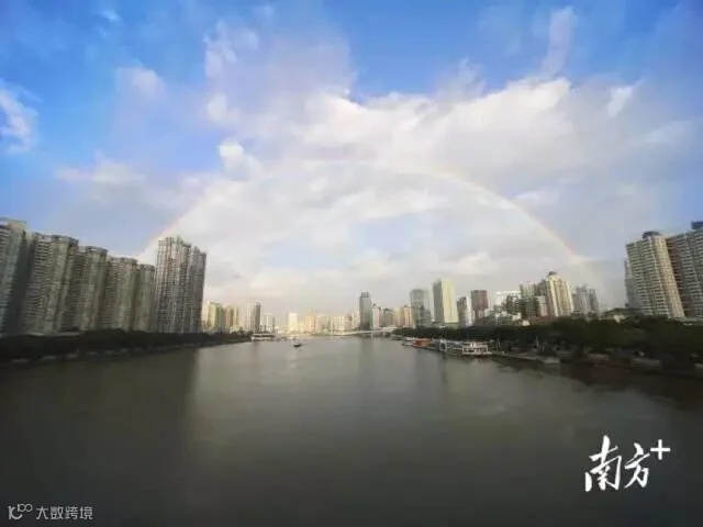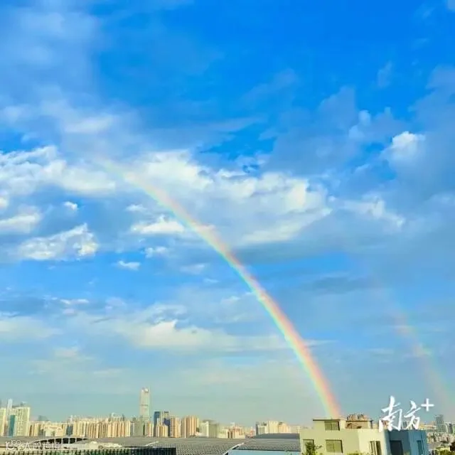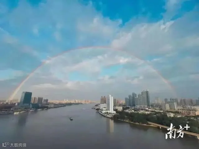 11月18日早上7时30分许,毛毛细雨过后,广州上空横跨一道炫丽“双”彩虹,美不胜收,朋友圈纷纷刷起了彩虹美图。