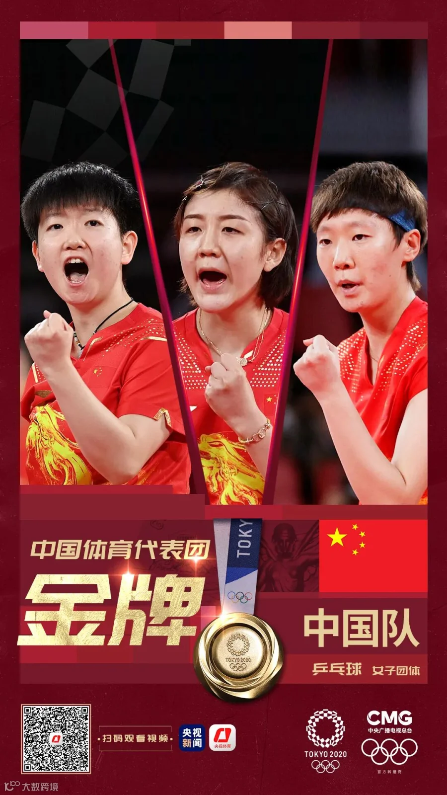奥运会乒乓球女子团体金牌!