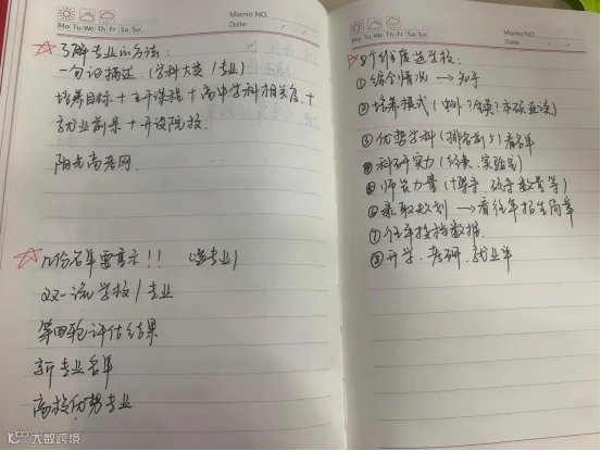 顺利参加完高考和之前报名的校考后,我把之前的笔记和电脑重要文件交给了他,里面有找学校和专业的方法。他来自己选择报学校和专业。