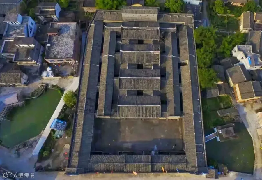 这座大院占地面积80亩,104幢二至三层带骑楼的楼房,呈长方形排列,鳞次栉比,中间有40亩专供商贩摆卖商品的市场空地,是一座小方城,宛如一座自给自足的“小围城”。现在,海口埠至梅家大院已建了6.3公里河堤观光道,还有水路游船等旅游项目。
