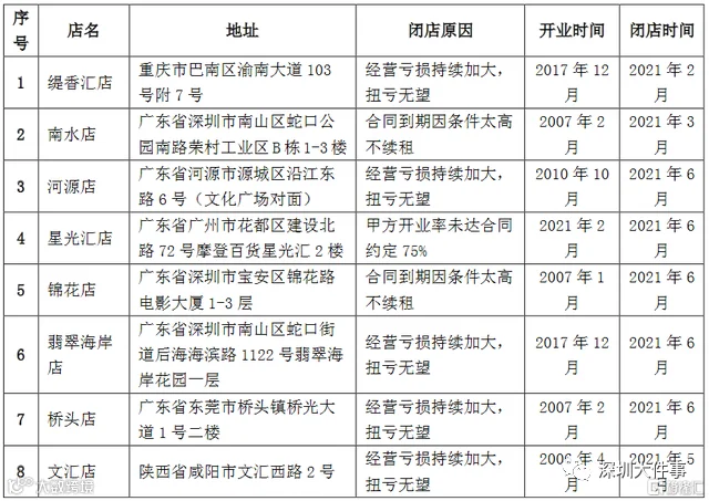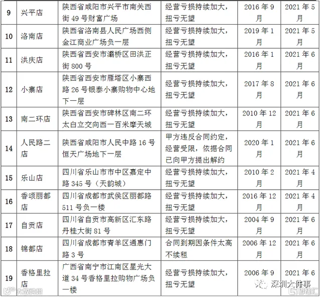 此外,人人乐还关闭了19家门店,其中3家门店来自大本营深圳。