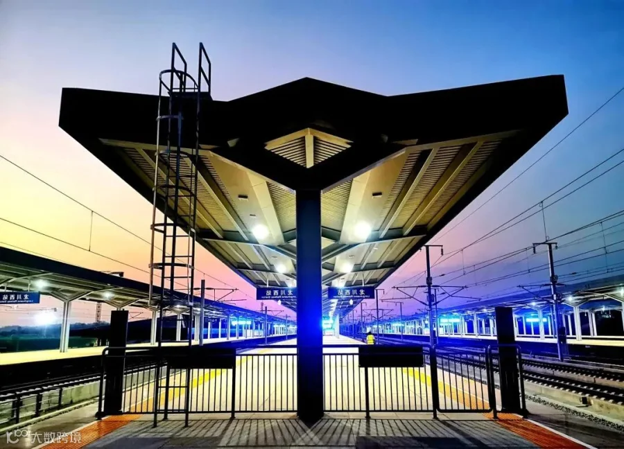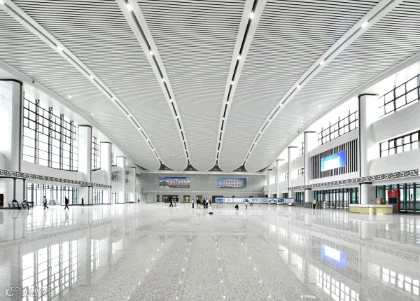 龙川西站设计为高架站,站房总建筑面积19980平方米,站台规模设置4台12 线,候车大厅6200平方米。