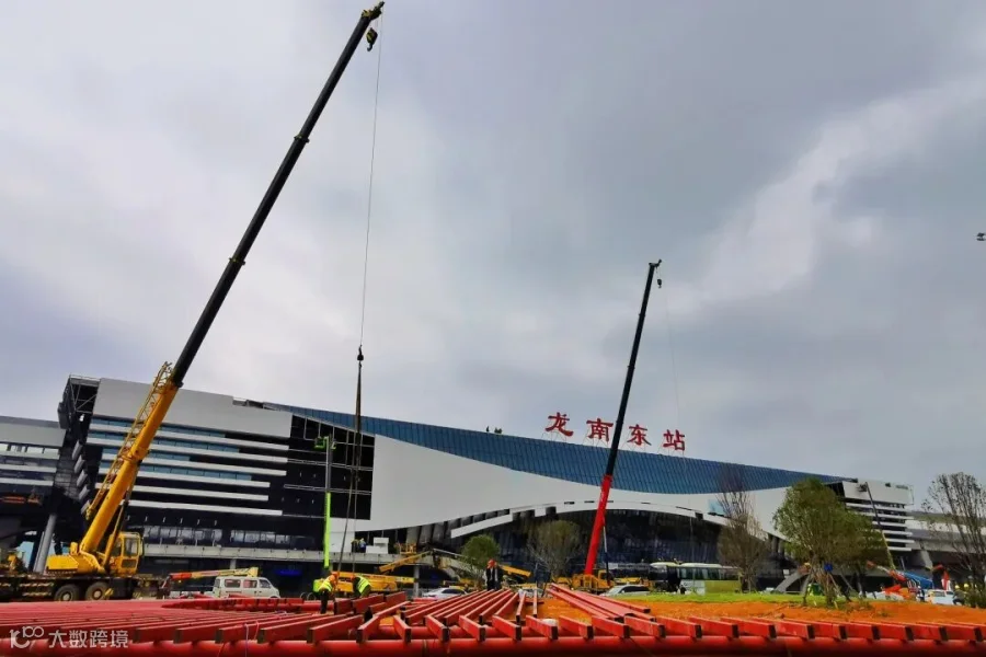龙南东站位于赣州市龙南县东侧的里仁镇,建筑面积1万平方米,车站规模为2台4线。