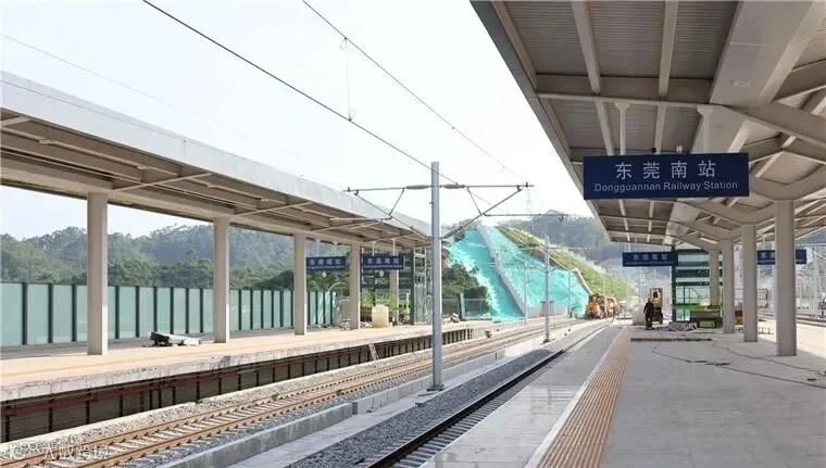 东莞南站由之前规划的2台4线调整为4台8线,站房面积28400平方米。规划城际站厅与赣深高铁东莞南站站厅都在地面,实现平行换乘。