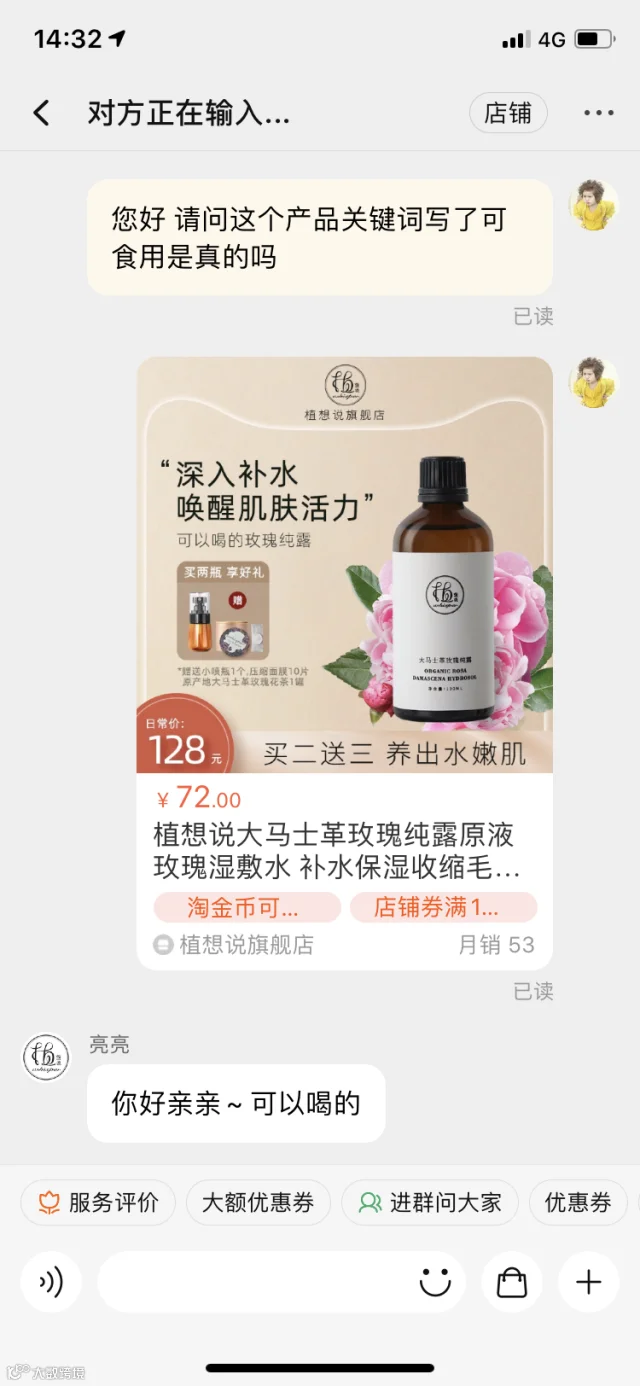客服回应产品“可以喝”