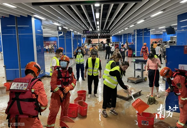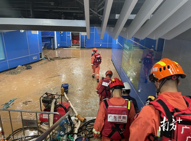 黄埔区应急管理副局长谷林对记者表示,神舟路地铁站正在进行站台隧道积水清扫工作,正在全力恢复地铁站的正常运营,预计最快今晚晚高峰时段,最晚明天能恢复正常运营。