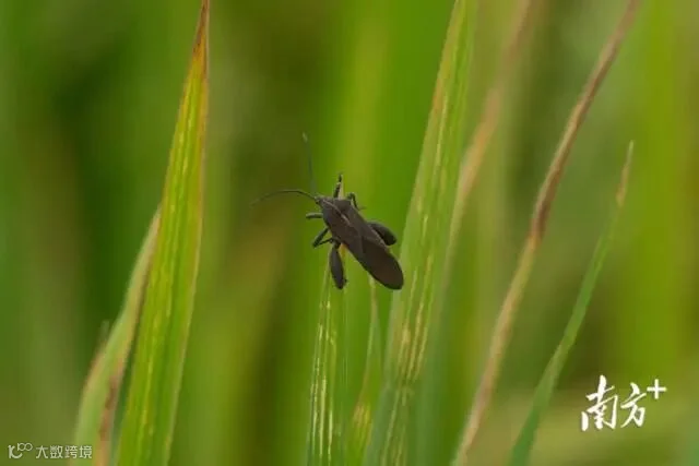 10月31日,珠海斗门旧街,秋收之际一只菲缘蝽爬上稻叶。南方拍客 小溪之花 供图