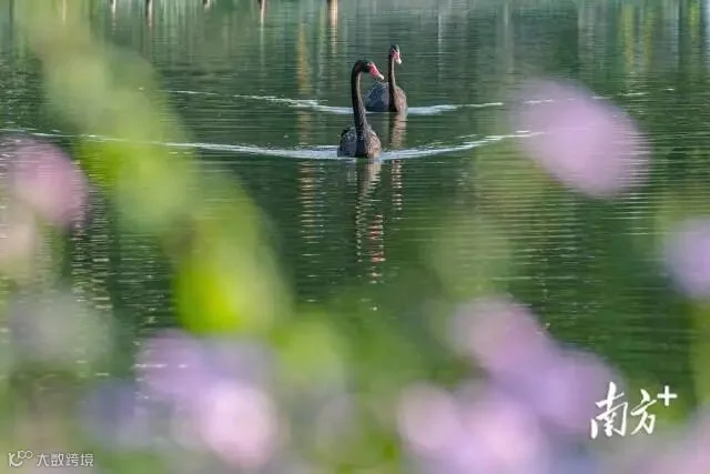 11月1日,珠海度假村湖中,一对黑天鹅悠然自得。南方拍客 沙滩上的咸鱼 供图