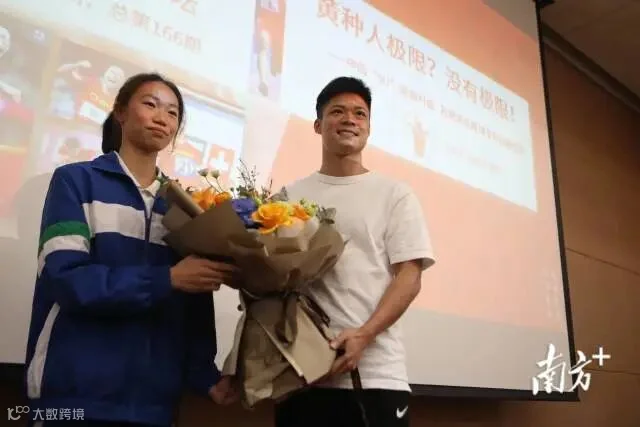 “听到苏神要来,我们都特别激动!”来自高一(9)班的熊锋同学是一名田径特长生,已经考下一级运动员。在田径场上,苏炳添指导他调整起跑的角度,教他怎么调起跑器。“我今天是来向苏神学习的,面对面的近距离让我清晰看到了他如何调节起跑器,帮助我在之后的学习中动作更加规范。”不久前,熊锋同学在2021年广东省中学生田径锦标赛中跑出了10秒88的成绩,“他的每一场比赛我会看得非常仔细,他紧张,我跟着紧张;他呐喊,我也跟着他一起呐喊。”熊锋说,苏炳添坚持不懈的精神一直激励着他,并把“苏神”当做未来努力超越的目标。