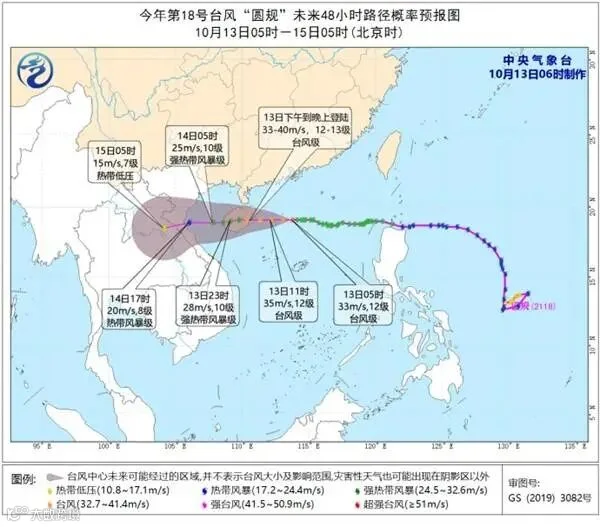 今年第18号台风“圆规”已于今天(13日)5时由强热带风暴级加强为台风级,其中心位于
