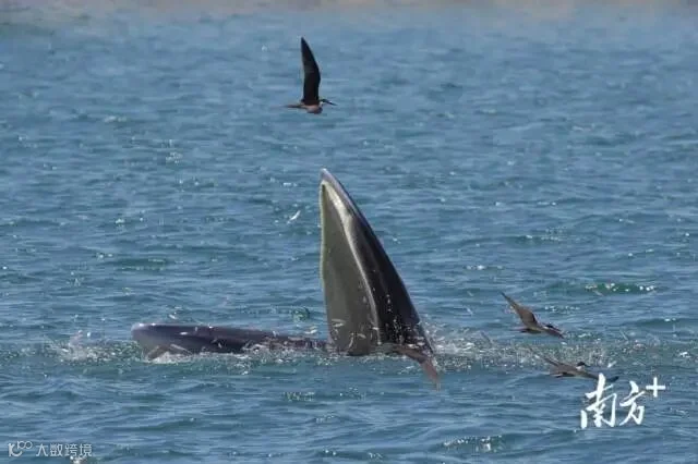 7月4日早晨,深圳大鹏海域天气晴朗,风平浪静,此前巡弋于该海域的布氏鲸“小布”也浮出海面进食,引来大批海鸟相随。