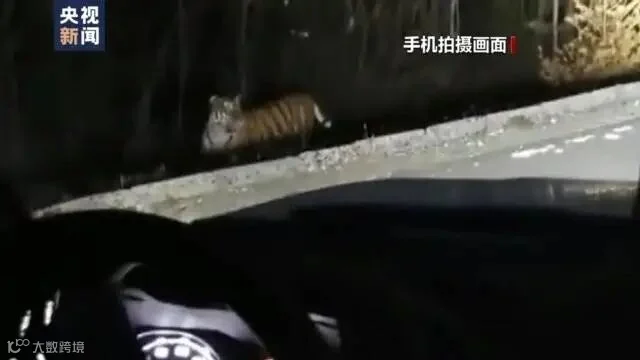 10月15日晚上,森林公安民警在例行夜班巡逻途中,遇到一只东北虎趁着夜色出来“巡山”,民警用手机记录下难得的画面。