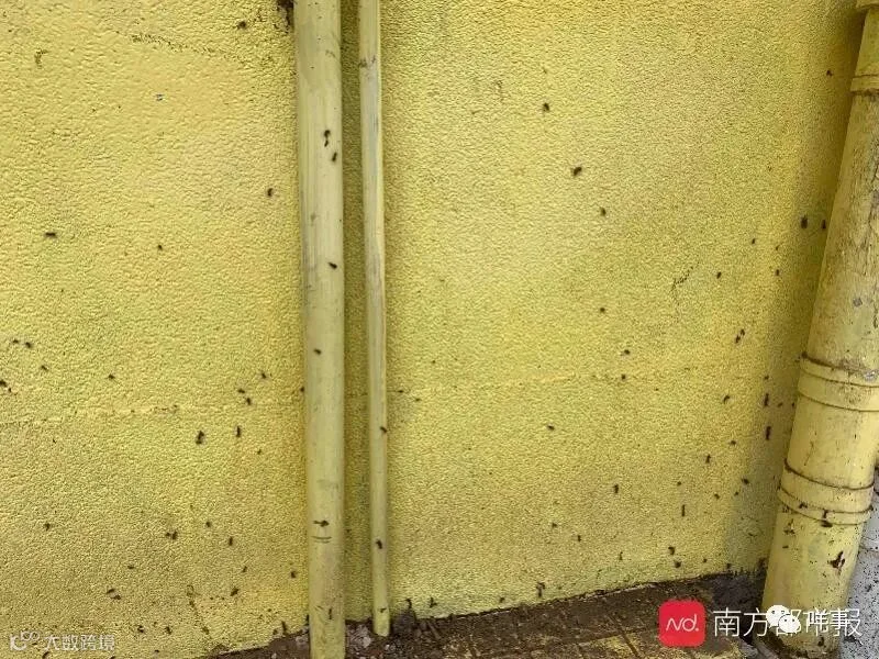 视频可见一栋居民楼的墙壁和水管上布满密密麻麻的黑色虫子,目测有数百条
