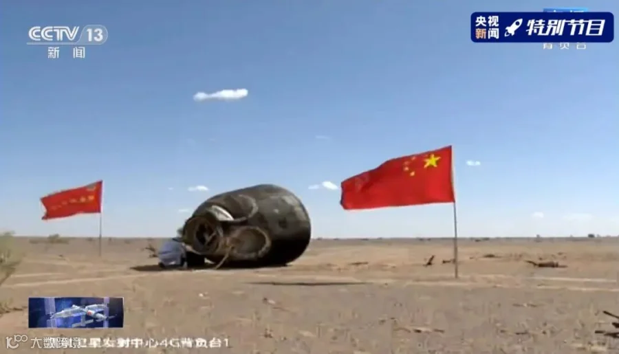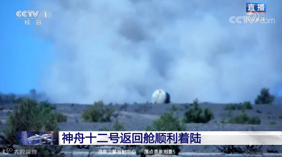 9月17日13时30分许,神舟十二号载人飞船返回舱反推发动机成功点火后,神十二安全降落在东风着陆场预定区域。这是神舟飞船首次在东风着陆场着陆。