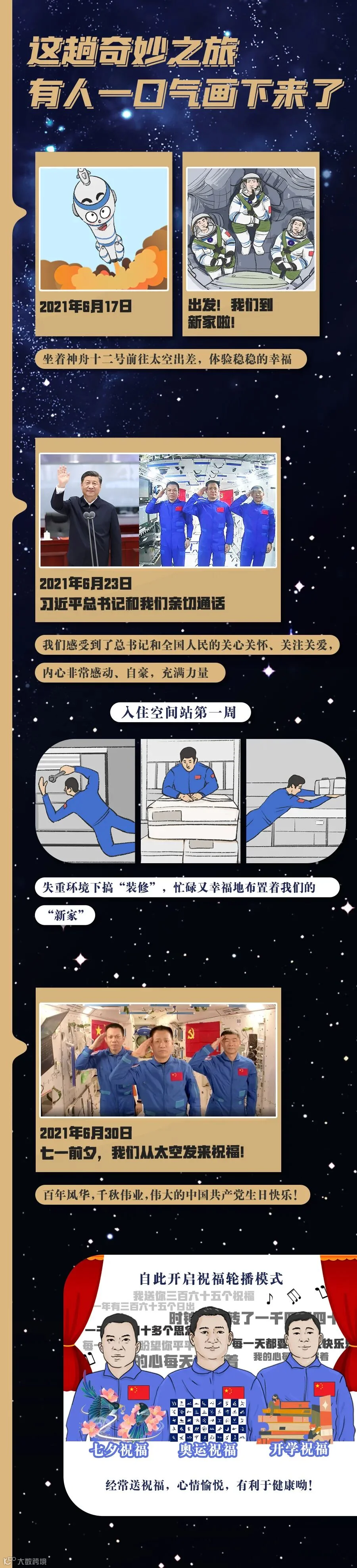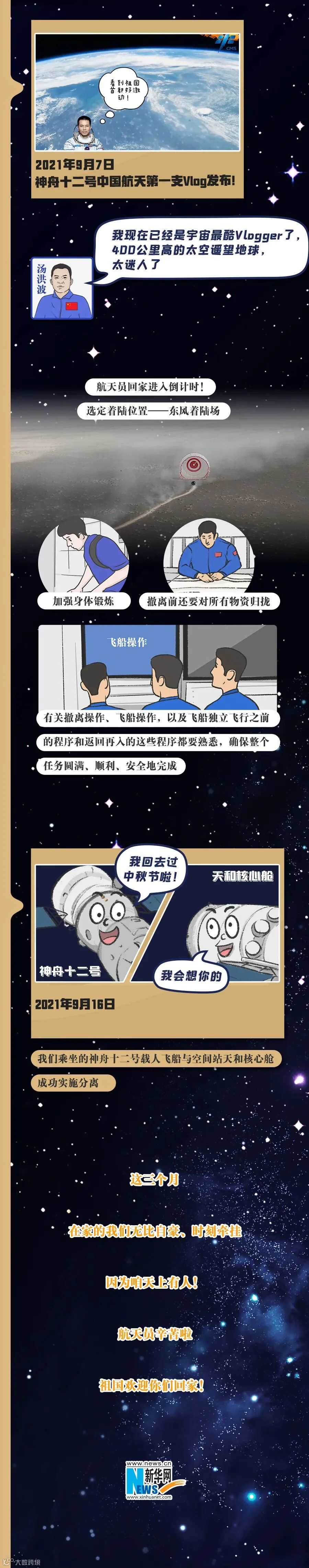 “太空出差三人组”今日回家,他们三个月的太空生活,一举一动都时刻牵动着广大网友的心。这段奇妙太空之旅有哪些精彩瞬间,有人用手绘一口气画下来了,让我们一起来看看吧!