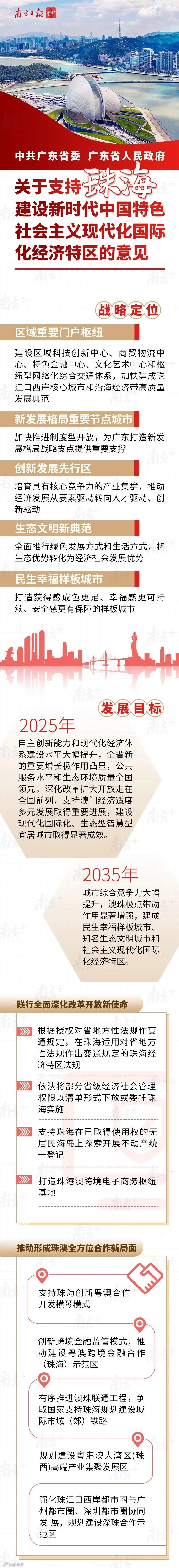 中共广东省委、广东省人民政府关于支持珠海建设新时代中国特色社会主义现代化国际化经济特区的意见