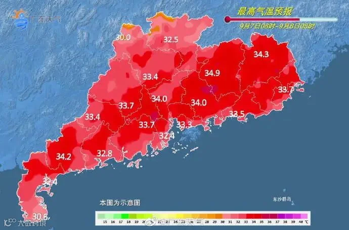 9日,我省大部晴间多云为主,午后有分散雷阵雨。最高气温:粤北、珠三角中北部、粤西的北部、粤东的北部市县34℃~37℃,其余市县31℃~33℃。