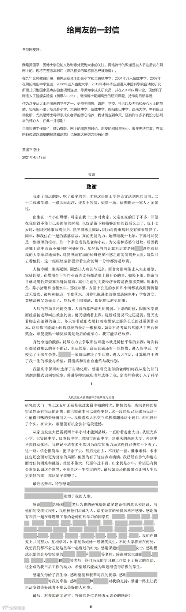 从炬光乡小学、大寅镇中学、仪陇县中学、绵阳市南山中学,到重庆的西南大学,再到中科院自动化所,“一直盼着走出大山”的黄国平已记不清有多少次因为现实的压力而觉得快扛不下去了,他的信念很简单:“把书念下去,然后走出去,不枉活一世”。