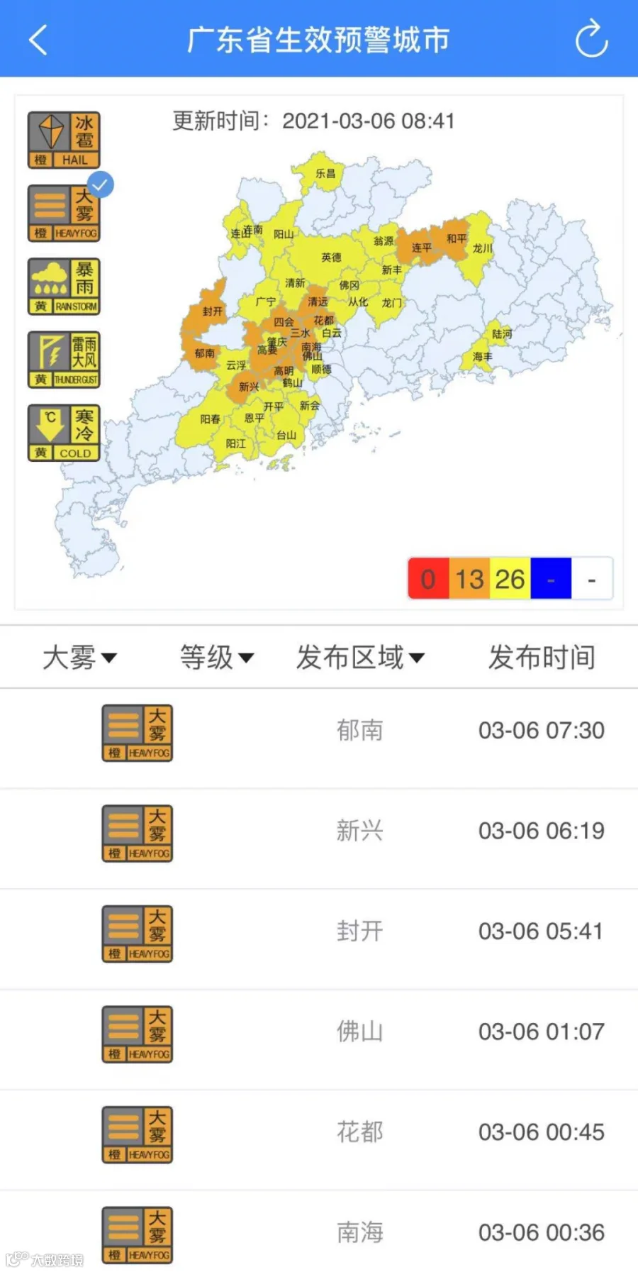 发布了大雾预警信号