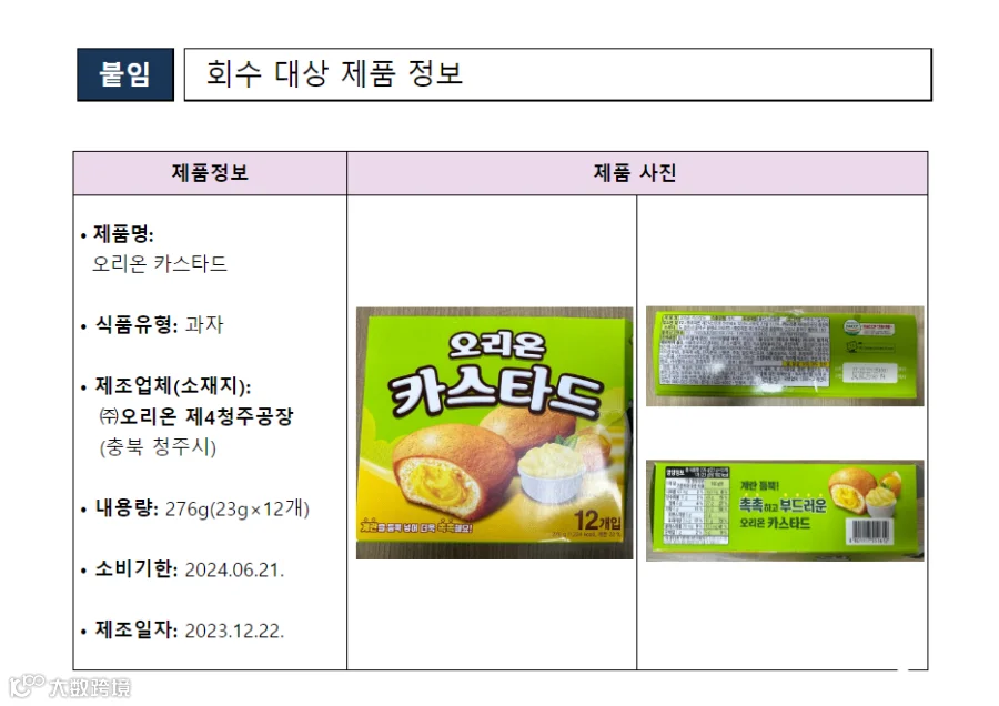 该产品于2023年12月22日生产,保质期至2024年6月21日。内容量为276g(23g×12个),出库量为1318.2kg,即是约等于57000个好丽友点心。在获知检测结果后,韩国好丽友立即采取紧急召回措施,并计划于1月4日完成回收工作。