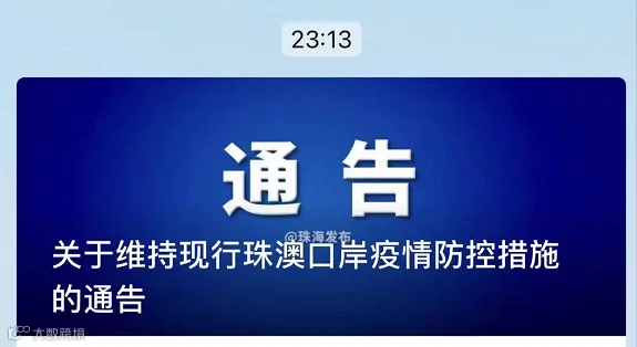 据珠海发布9月28日深夜消息,珠海市新型冠状病毒肺炎疫情防控指挥部办公室发布最新通告,其中提出延续现行珠澳口岸疫情防控措施至2021年9月30日24时。