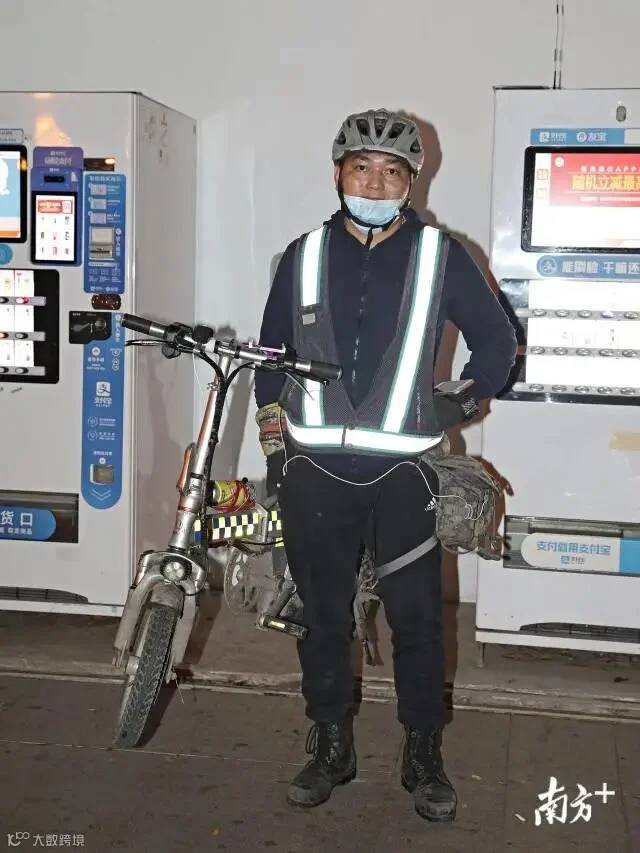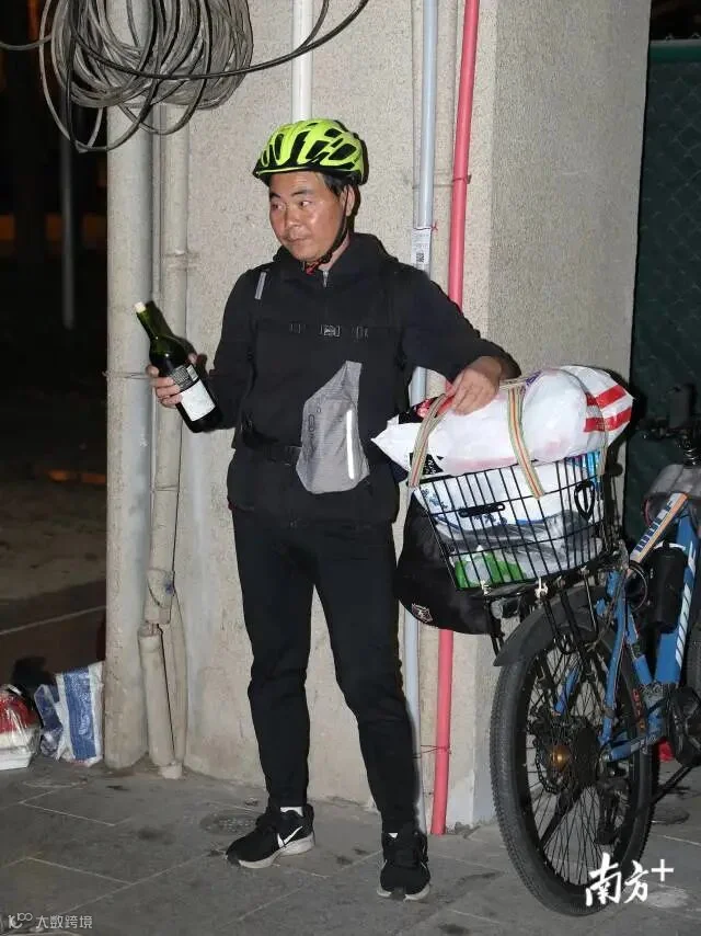 有一晚,我们在江边遇到一位年轻人,他踩着共享单车,依靠在江边的石栏上,手上捧着手机,脚下一动不动,上前询问可否交流,他说不行,他在打游戏。一个多小时后,我们围绕人民桥和广州大桥转了一圈,再次路过同样位置,那位年轻人还在,像雕塑一样原地没动;在这之前,我们在广州大桥下遇到过一位同样骑单车的人,而他已经骑了六七万公里。这位骑行爱好者来自上海,微信名字是浪子杨三,从上海经浙江、福建、深圳一路到达广州,在广州已经呆了多日,正计划第二天离开广州开启一段新的旅程。那天他买了一瓶红酒,自己给自己饯行。我们没有问,杨先生自己说:那你说像我们追求什么?打比方你有一千万,那我想知道你有一千万你追求什么?难道你觉得有一千万就比别人高档,比别人世俗,比别人自由?我是不觉得,我能把祖国的山山水水山川河流摄入到自己的心胸里面,这是我的追求。