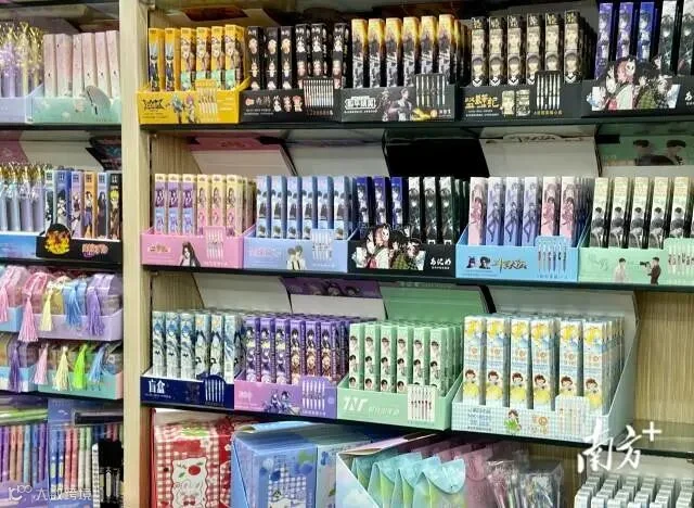8月31日,记者前往位于广州越秀区一德路的谊园文具玩具精品批发中心,在该批发中心中,大多商铺均有出售“文具盲盒”,包括“笔芯盲盒”、“手账本盲盒”甚至是文具套装盲盒等,不过仍以单支笔进行售卖的“文具盲盒”居多。