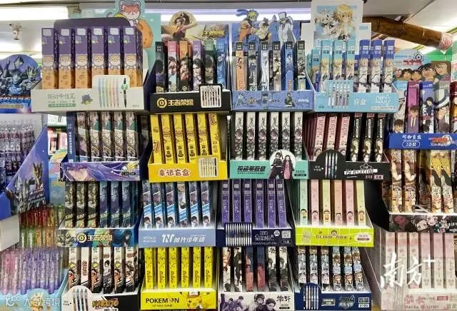 抽盲盒全凭运气,有时能抽到消费者自己喜欢的款式,有时还可能会抽到“隐藏款”。和“玩具盲盒”相似,市面上售卖的“文具盲盒”大多和知名动漫、明星偶像等IP联名,吸引消费者购买。“我喜欢这个明星偶像团体里的其中一位,我便想抽中上面印有他的人像的笔。”一名购买了一整盒盲盒笔的中学生向记者表示。
