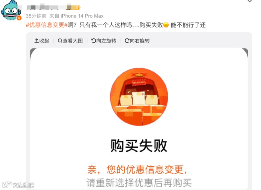 “优惠信息变更,购买失败”