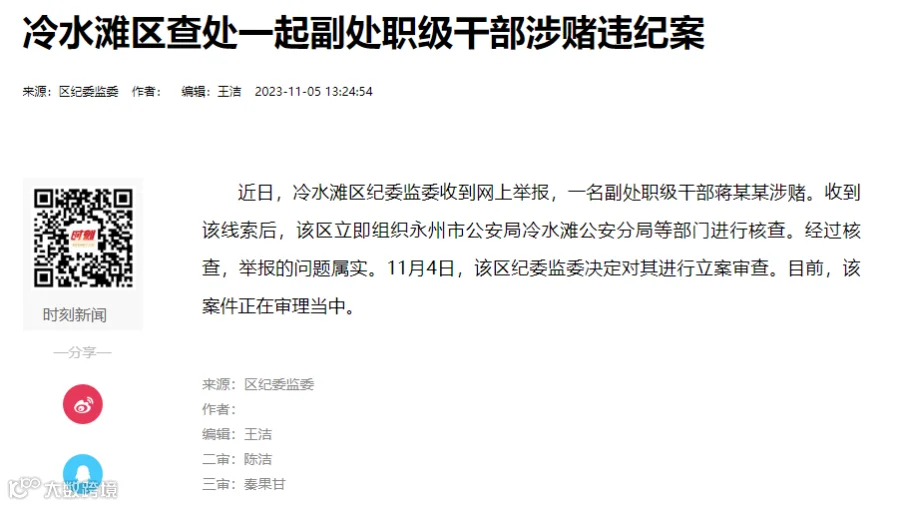 目前,永州市冷水滩区纪委监委已立案调查。