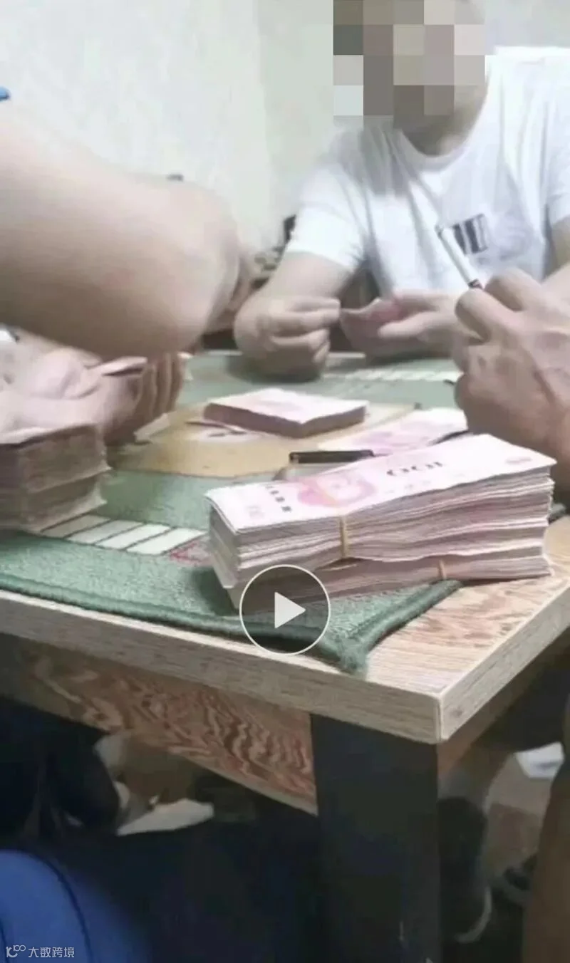 报料人发来的视频显示,五人围坐在一张桌子上,桌子中间和座位前堆放着百元大钞,一人正在发牌。其中一人说:“我500。”