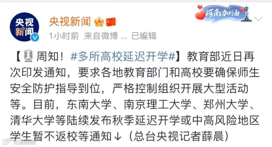 扩散!这些高校发通知:推迟或提前开学