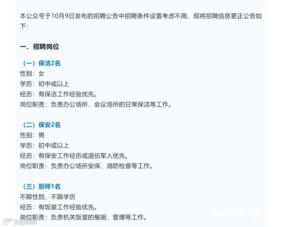 “招保洁要35岁以下、158cm或以上”,广东一地回应