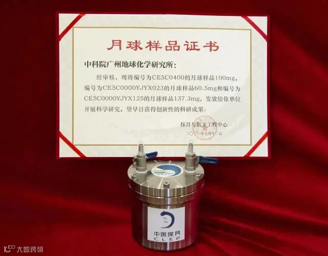 其中,中科院广州地化所获批3件月球科研样品,其中一件月尘粉末100mg,两件岩屑分别是60.5mg和137.3mg,总共297.8mg。