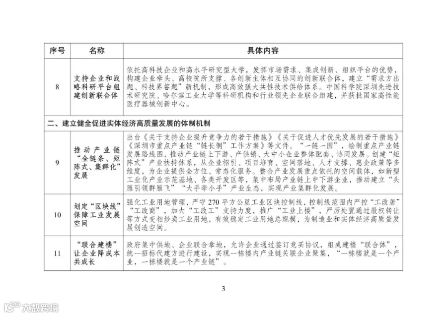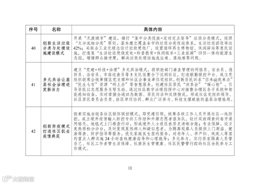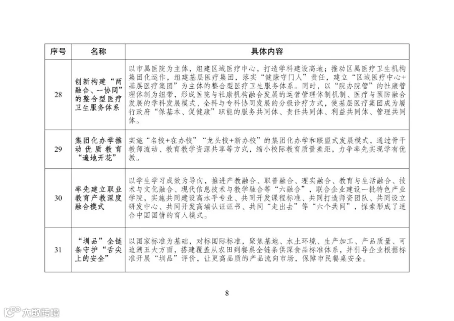 《通知》共有5方面47条创新举措和经验做法,主要包括建立“基础研究+技术攻关+成果产业化+科技金融+人才支撑”全过程创新生态链、建立健全促进实体经济高质量发展的体制机制、构建以规则机制衔接为重点的制度型开放新格局、创新优质均衡的公共服务供给体制、创新推动城市治理体系和治理能力现代化等,鼓励各地结合实际学习借鉴。