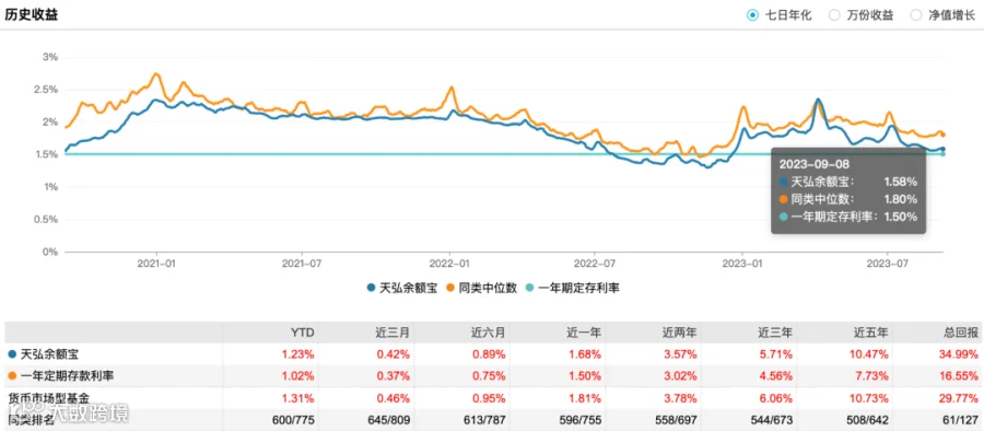 从业绩来看,截至2023年9月8日,该基金今年以来的回报为1.23%,7日年化收益率为1.5780%,在全市场货币基金中处于中游位置。