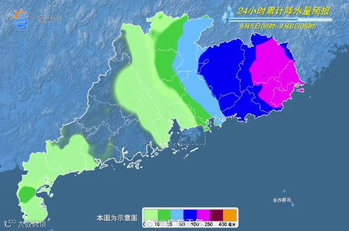 5日,汕头、潮州和梅州有暴雨到大暴雨,局部特大暴雨;揭阳和汕尾有大雨到暴雨局部大暴雨,粤西和珠三角西部市县多云有分散阵雨,其余市县有中(雷)雨局部大雨或暴雨。粤东市县伴有8~11级阵风。