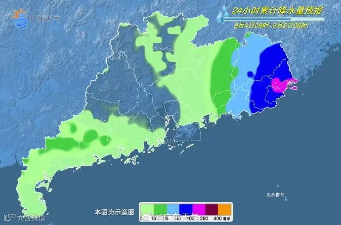4日,潮州、汕头、梅州夜间转大雨,粤西市县有分散阵雨,其余市县多云。粤东沿海夜间伴有8级左右阵风。